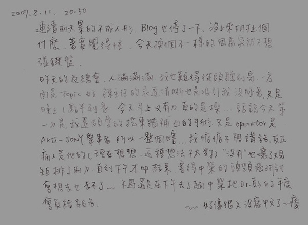 突然想到星期五中午 分配評鑑的工作時 彭的一小段話 有點椎心的感覺