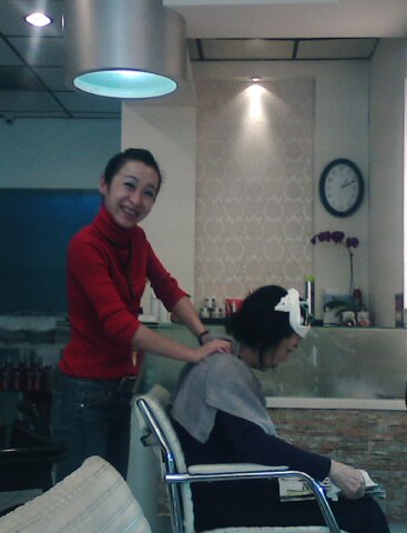 一整個沒睡飽硬是眼皮用力張開~把頭弄好後 兩點整是想回家 不想上班~~