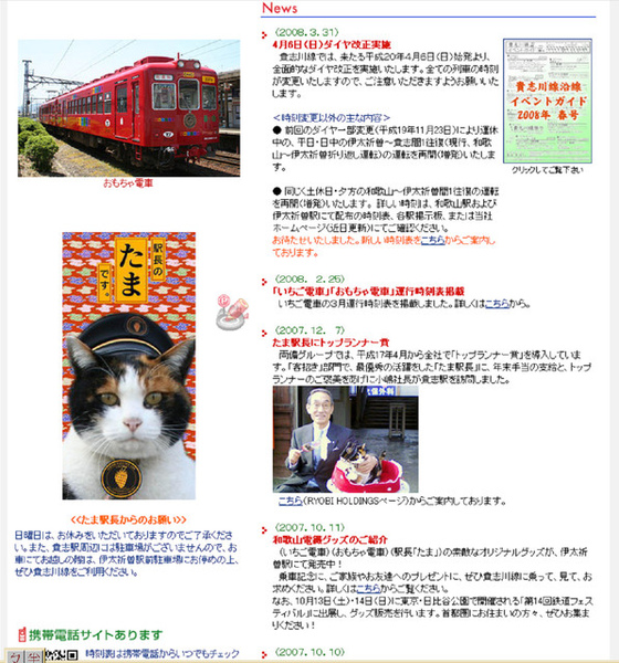 日本和歌山電鐵株式會社所經營的電車路線貴志川線,自從八歲的玳瑁三色母貓「小玉」被任命為該線無人服務車站「貴志站」的站長後,