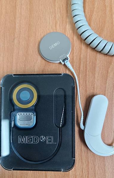 其實這幾天的確有發現哥哥戴著助聽器時好像有點接收到聲音的感覺,有時頭會往聲音來的方向看,在笑,好像助聽器有點幫助(助聽器感動中😅)。今天回診ENT,作了音場測試(sound field test),也就是戴著助聽器看行為表現,發現似乎在80~90分貝時是有反應的,雖然“聽”起來好像很嚴重,但至少在這段時間,助聽器有幫助到哥哥的聽力刺激,的確也達到了目的😭。我們也了解了一下電子耳(cochlear implant),摸到了電子耳的機身(demo),想不到以前在院內看著電子耳的海報,看著何醫師的簡介,似懂非懂的覺得好奇的我,居然在這時要認真的去認識它。